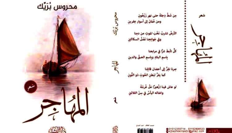 أما العنوان فيعرف اصطلاحًا بأنه: مجموعة من العلاقات اللسانية ترد مطلع النص لتعينه وتعلن عن فحواه وتُرغب القراء فيه. وعنوان “المُهاجِر” من أبرز سماته أنه يجذب الجمهور لفظًا وصورة، فالعنوان بحروفه المهموسة والمجهورة، يتناغم، مع خلفية يظهر فيها سندباد النص الأدبي محروس بريك، الذي يحيا بعيداً عن وطنه الذي لا يكاد يبرح فؤاده وخياله رغم ابتعاده عنه، يفرح لفرحه ويحزن لحزنه، بل ونكاد نلمس قطرات دمعه بين أوراقه، فأتى العنوان مُعبراً عن حالته النفسية لما يحياه من غُربة عن أمه “الوطن” كالطفل يترقب أمه في كل حين، ترعاه تنتظر أول تمتماته باسمها، ويعاني هو جاهداً أن يُناديها بكل جوارحه حتى ينطق اسمها بكل أجراس الموسيقى المتمثلة في اللغة العربية ألا وهو حرف “الميم المضمومة”، لتصبح الرابط بينه وبينها متى شاء أن يناديها همس بصوت الميم متمنياً أن تضمه ويضمها، هكذا نادى الشاعر المرتبط بأمه مصر أول حروف عنوانه في “المُهاجر” بعد ال التعريف التي يًعرف بها نفسه، فها أنا يا مصر طِفلُكِ أحيا بكِ، وأناديكِ بكل ما أوتيت من قوة وضعف، ويأتي نَفَسُ الشاعر مهموسًا في حرف الهاء حاملًا معه كل سنين اغترابه وكأنه يريد أن يرتاح، لكنه يتحمل، وكأنه ما إن ظفر بنطق اسم أمه حتى هدأ ووضع رأسه ليستريح، وكأنه به يصرخ بألف المد، لنستشعر منه كم من المدة التي طالت في غربته عن وطنه، وكم يُعاني من الآلام في بعده عنها، وجاء هذا واضحاً في ضجة حرف الجيم، التي خرجت بكل ما فيها من قوة بعد استراحة المتعب من طول الهجرة، لا يهدأ ولا يرتاح قلقًا على وطنه، وكما أن فراق الأم صعب، كذا فراق الوطن عند محروس بريك، وهو ما كشف عنه حرف الراء الذي اختُتِمَ بها العنوان، هكذا الشاعر، فراقه لوطنه ثقيل على نفسه، فوطنه “مصر” هو المبتدَأ والمنتهَى كما يبدأ وينتهي عنوان ديوانه “المهاجر” بالميم والراء.